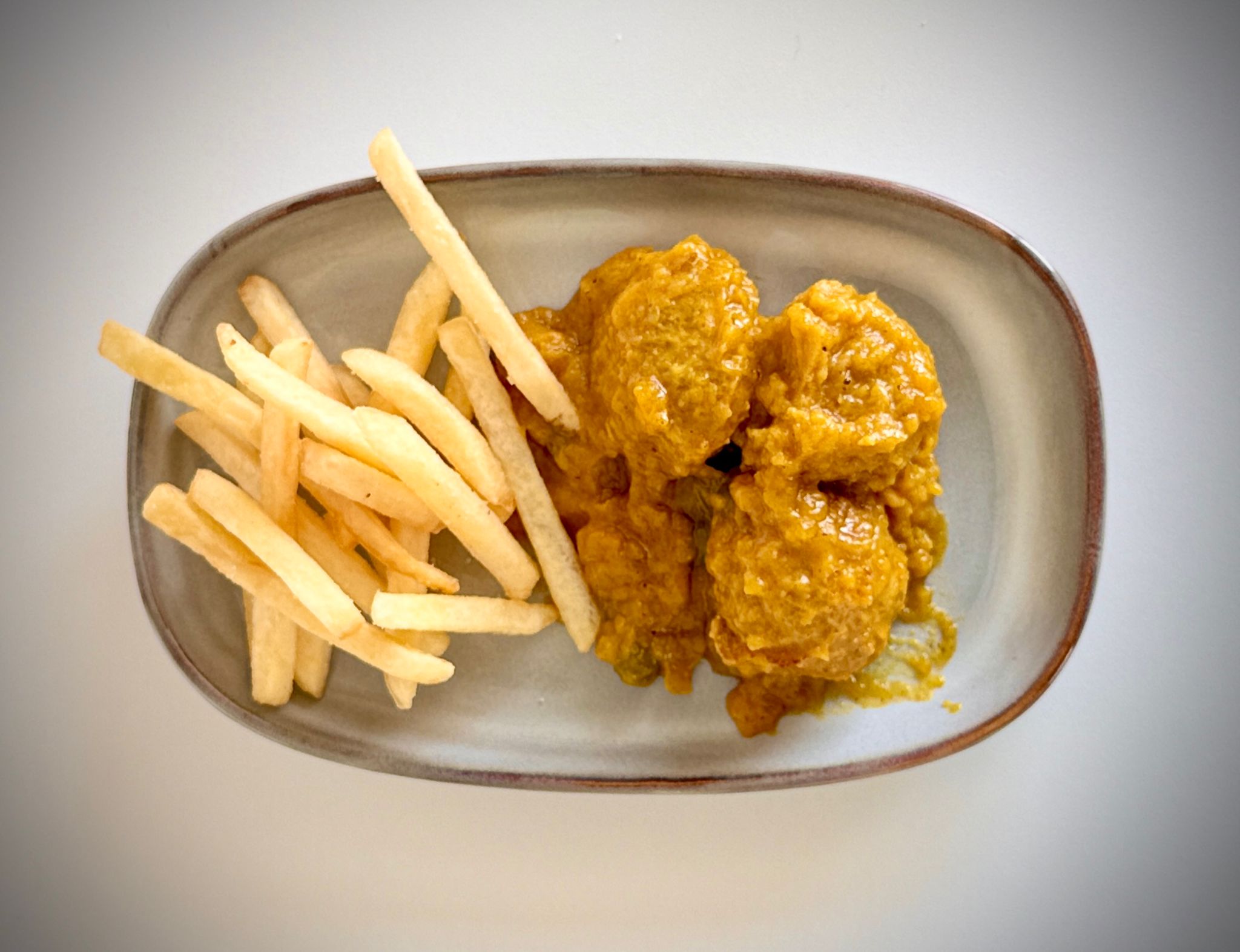 Camarones, harina de trigo, harina de garbanzos, cebolla, perejil