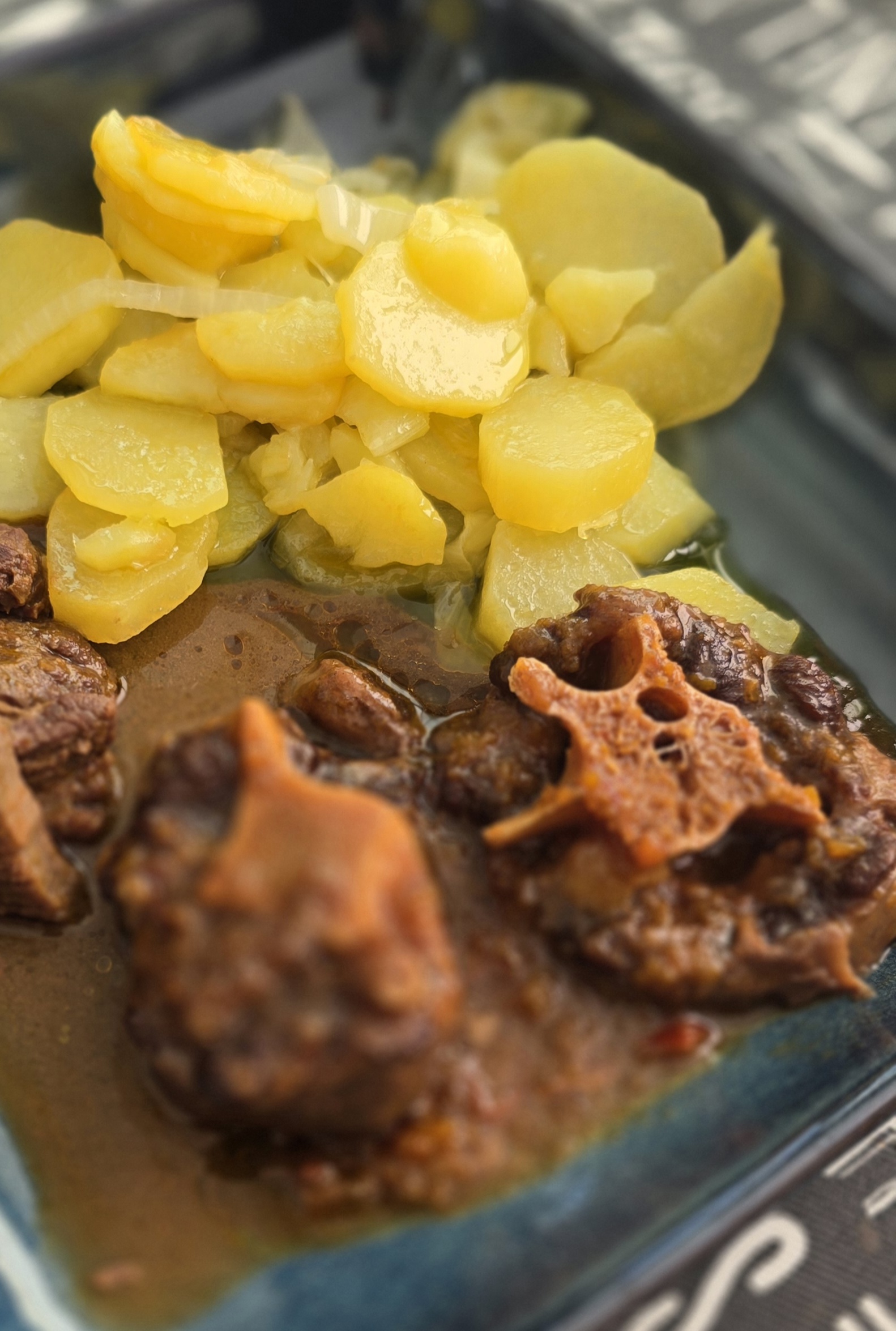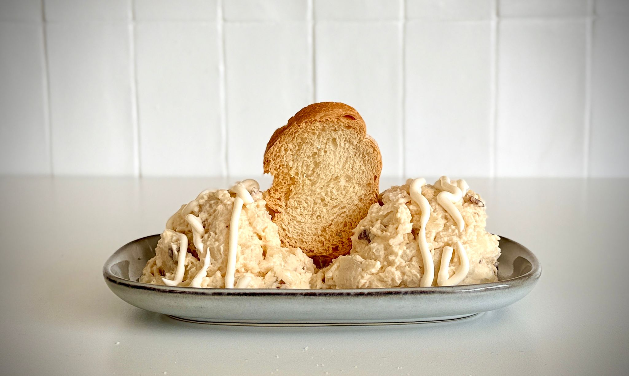 Papas, mahonesa ligerita, atún, guisantes, zanahoria y huevo