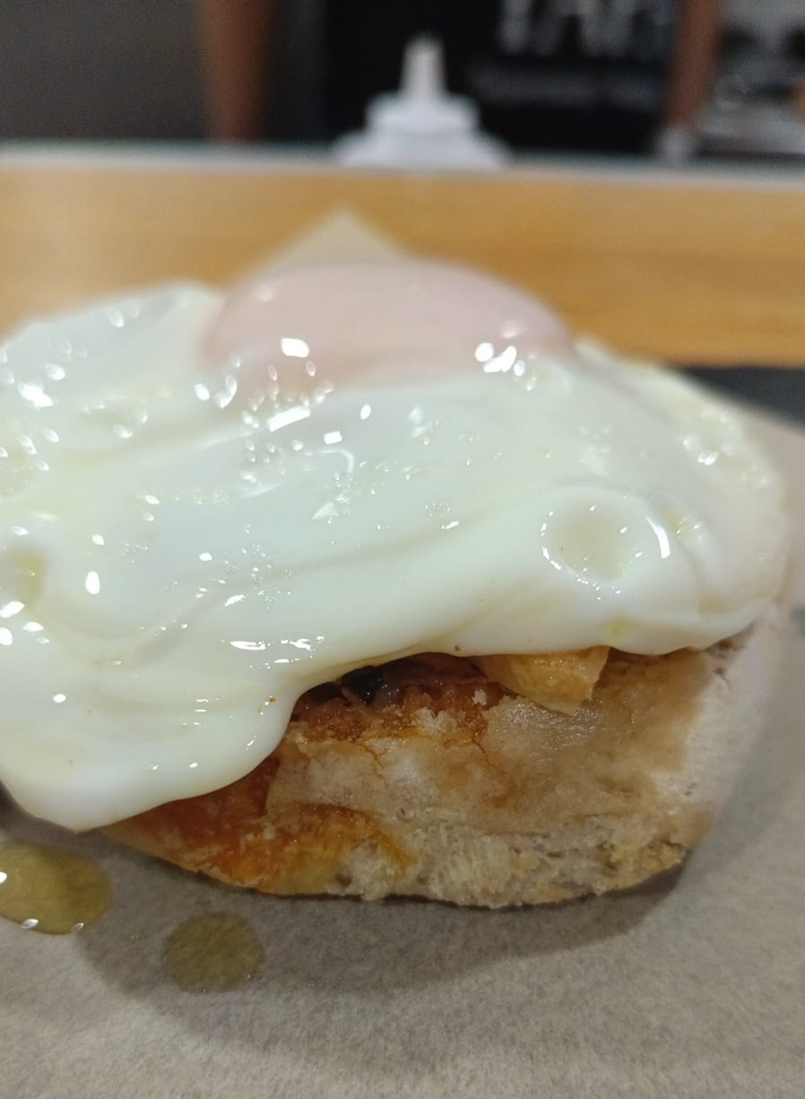 Pan de Mollete, pringá , queso viejo y huevo frito