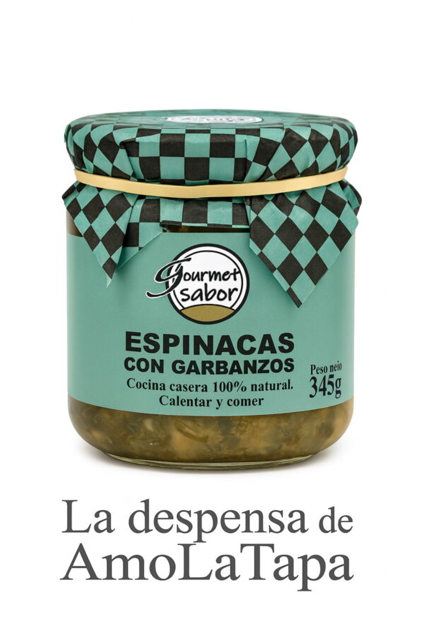 Un plato aparentemente sencillo lleno de sabor: Espinacas con garbanzos. Una opción saludable de comida preparada a partir de ingredientes 100% naturales y sin aditivos, que combina la frescura de las espinacas con la suavidad de los garbanzos. Haz diferentes tus comidas cotidianas, y añade a tu menú los garbanzos con espinacas, una elección nutritiva y deliciosa, lista para ser disfrutada cómodamente en minutos.