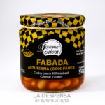 Ingredientes: fabes (45%), panceta curada (9%), morcilla asturiana (8%), chorizo asturiano (8%), aceite de oliva virgen extra (A.O.V.E.), especias, cebolla, sal y agua.